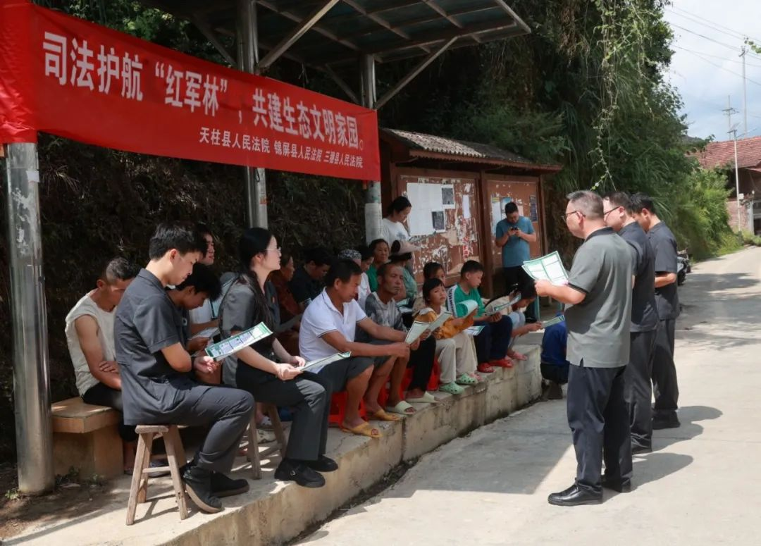 古樹名木是森林資源的瑰寶,更是歷史與文化的鮮活載體。8月13日,貴州省天柱縣人民法院牽頭聯(lián)合三穗、錦屏兩縣法院,組織黨員干警赴錦屏縣河口鄉(xiāng)塘東村“紅軍林”,共同開展“保護(hù)古樹名木,弘揚(yáng)生態(tài)文明”主題黨日活動(dòng),以黨建“紅”引領(lǐng)生態(tài)“綠”,將黨組織戰(zhàn)斗力轉(zhuǎn)化為生態(tài)保護(hù)的強(qiáng)勁動(dòng)力,讓紅色基因成為驅(qū)動(dòng)高質(zhì)量發(fā)展的“綠色引擎”。