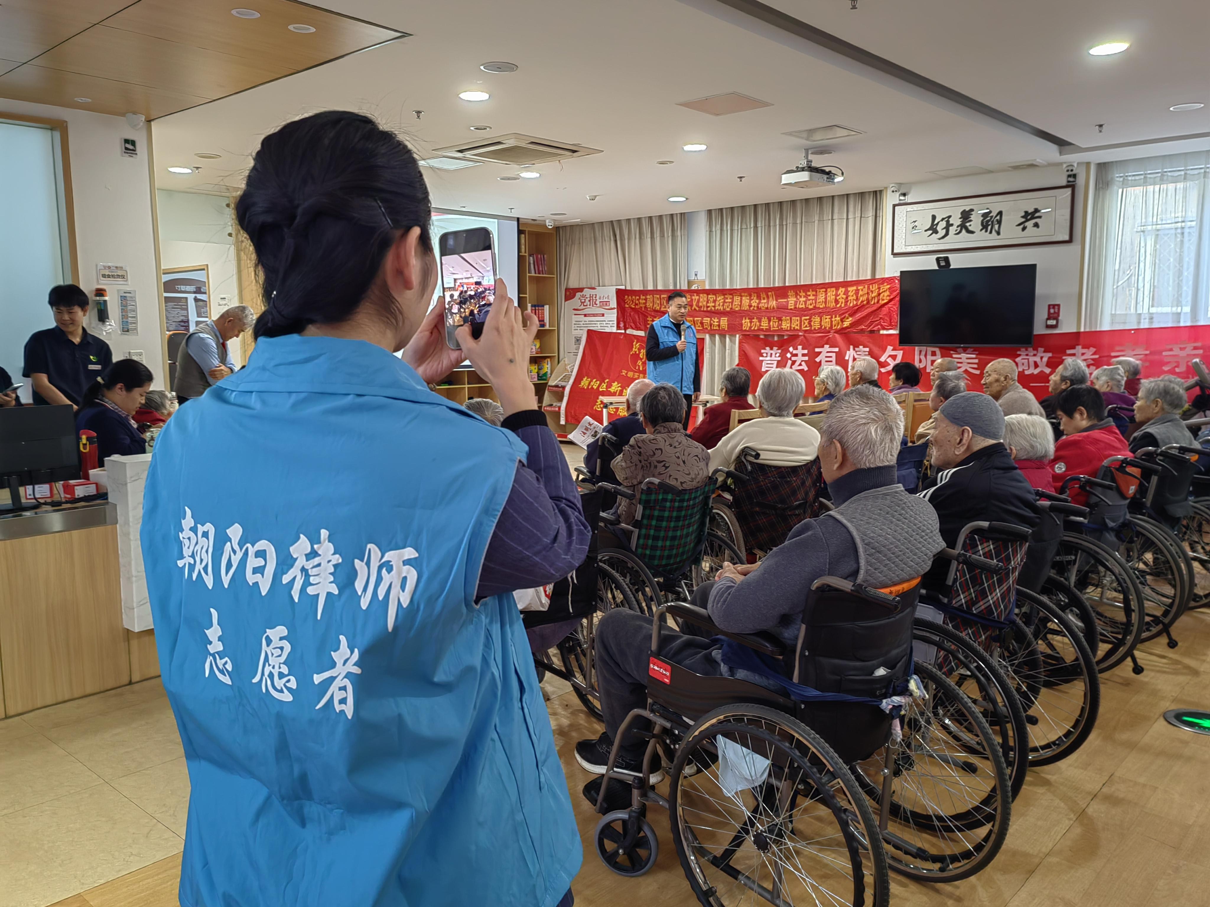 普法現(xiàn)場采用“憲法條文解讀+典型案例剖析”模式,讓抽象法律知識轉(zhuǎn)化為老年群體可感知、可運用的維權(quán)工具。朝陽區(qū)律師協(xié)會公益與社會責任委員會副主任吳廣松、王躍兩位律師從不同維度為公寓老人送上“法治大餐”。他們圍繞人身自由權(quán)、人格權(quán)、住宅權(quán)、社會保障權(quán)等核心權(quán)利,用通俗語言闡釋“權(quán)利是什么、邊界在哪里”;同時聚焦老年生活實際場景,分析了財產(chǎn)處置(立遺囑權(quán))、個人隱私權(quán)、被贍養(yǎng)權(quán)、親情探望權(quán)、就醫(yī)決策預囑權(quán)等8項實踐層面的常見權(quán)益,并詳細說明侵犯這些權(quán)利可能面臨的民事賠償、治安處罰甚至刑事追責后果,引導老年人既要珍視權(quán)利,也要學會在權(quán)益受損時勇敢維權(quán)。