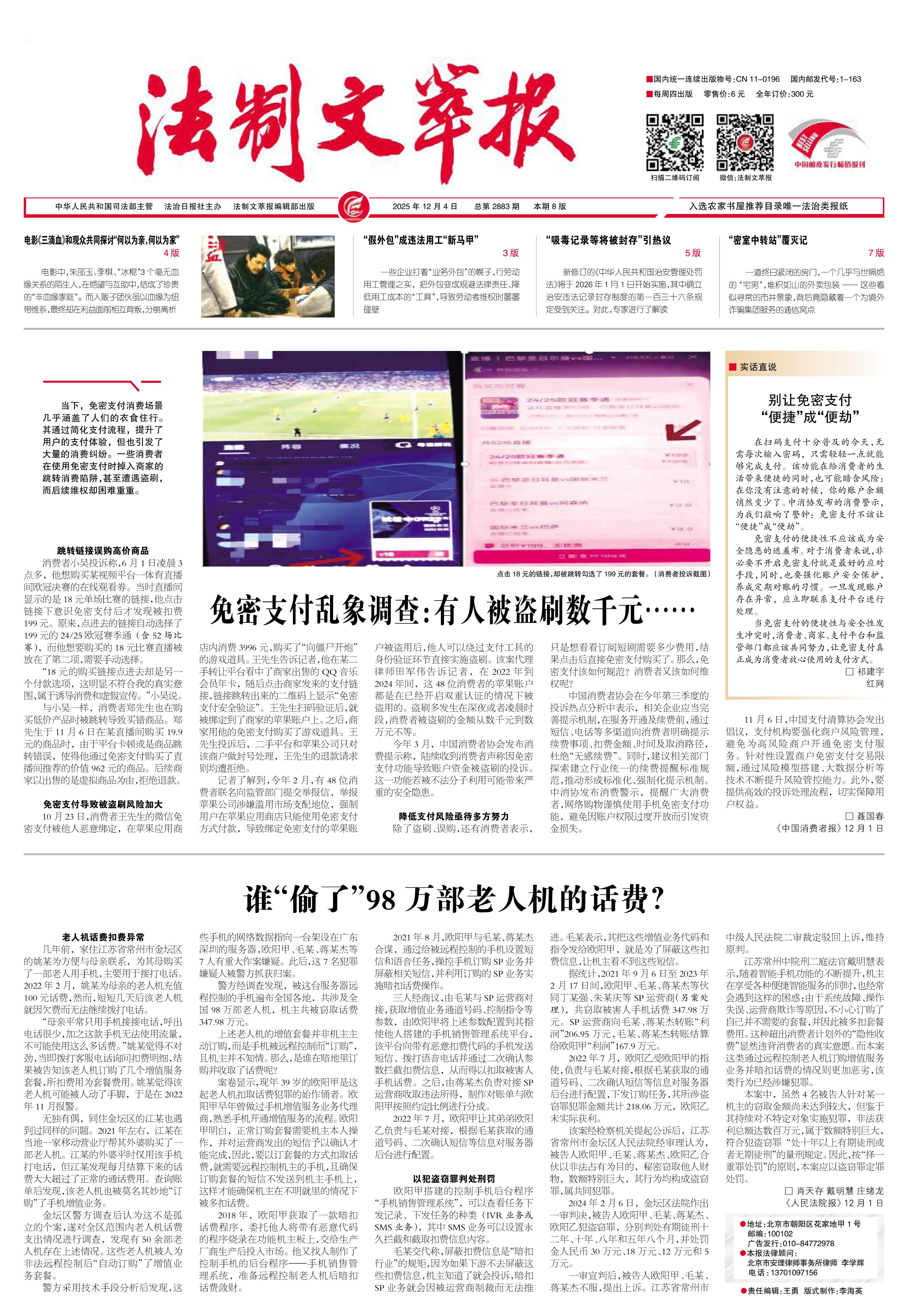 2025年12月4日《法制文萃報(bào)》總第2883期1版