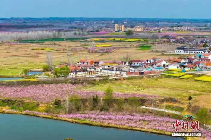 航拍湖北棗陽(yáng)熊集鎮(zhèn)萬(wàn)畝桃園。(無(wú)人機(jī)照片)張倩龍 攝