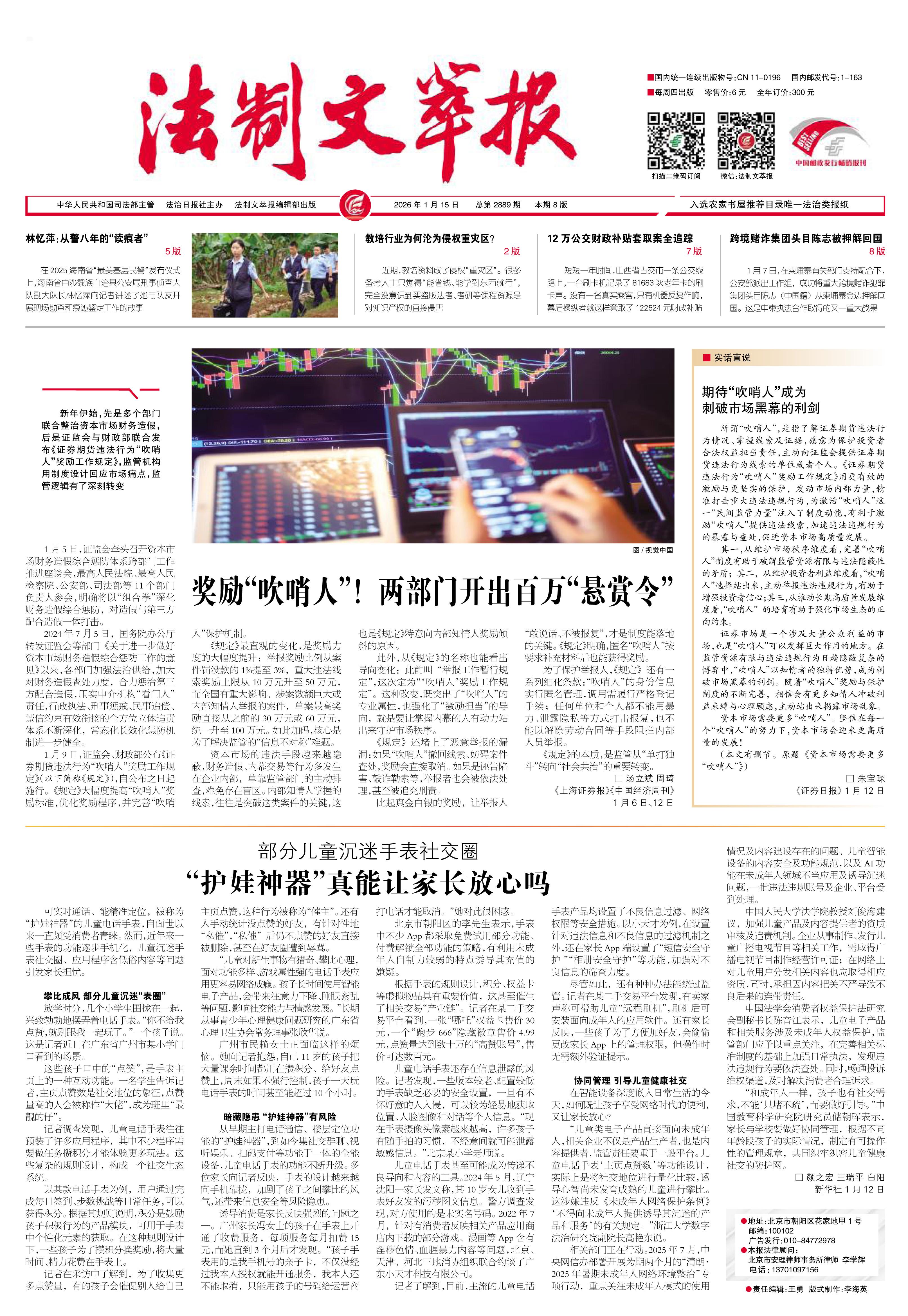 2026年1月15日《法制文萃報》總第2889期1版