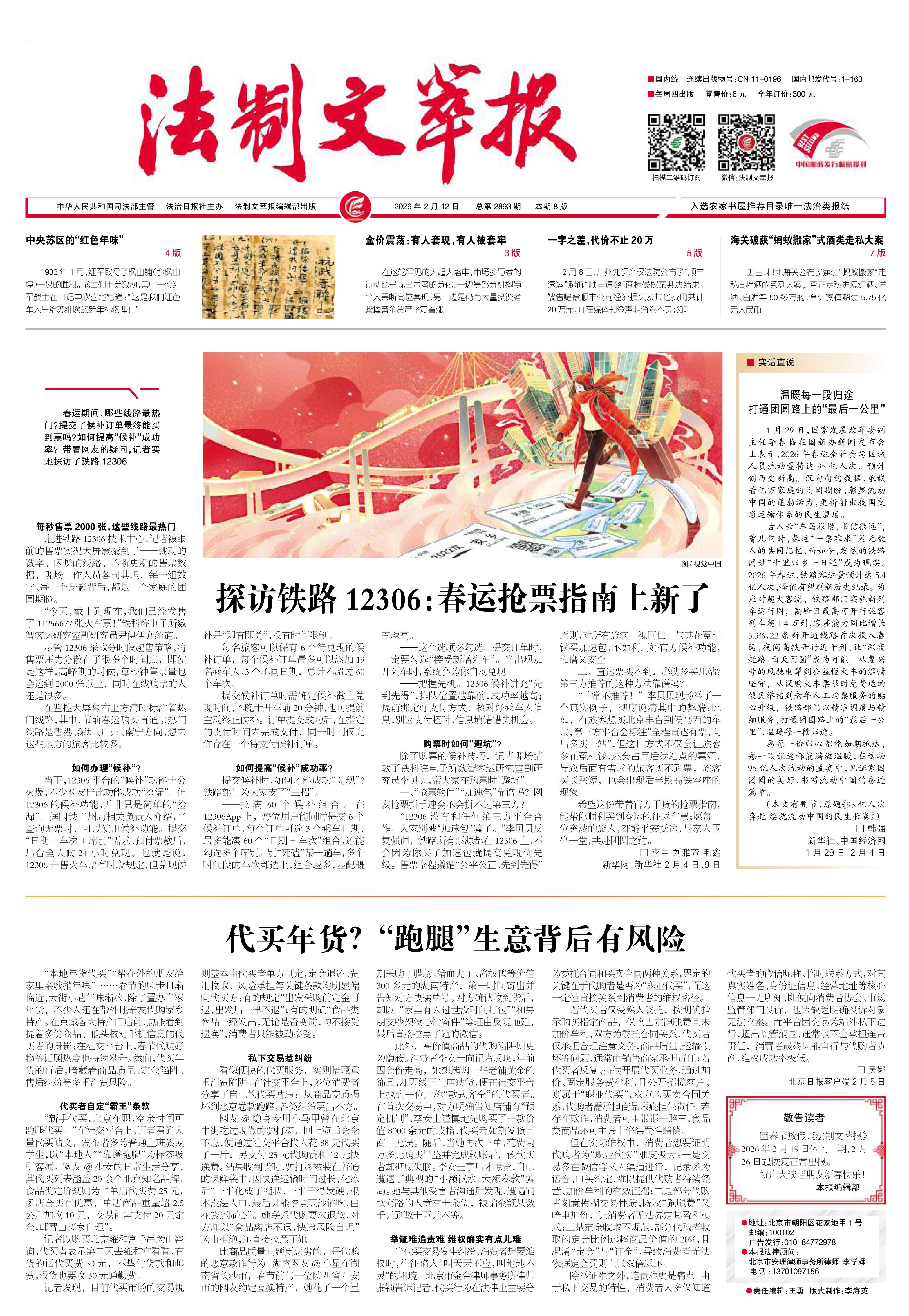 2026年2月12日《法制文萃報》總第2893期1版