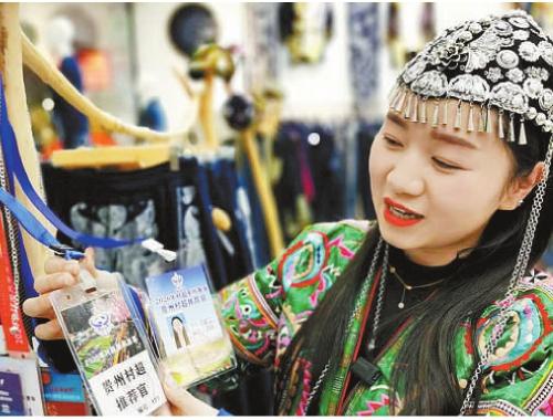 看好“村超”火爆流量的大學(xué)生劉勤蘭返鄉(xiāng)創(chuàng)業(yè)后,成為“村超”推薦官。圖為劉勤蘭向記者展示她的推薦官證。