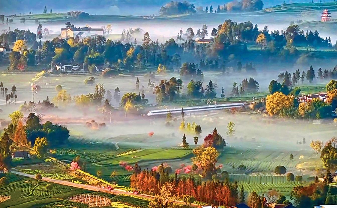 近日,一段拍攝于四川省雅安市名山區(qū)的茶園航拍視頻火爆全網(wǎng),更登上央視新聞、人民日?qǐng)?bào)等多家中央級(jí)媒體平臺(tái),讓名山的春日茶景驚艷全國(guó)。畫面里,朝霞映照茶山,晨霧繚繞在層層疊疊的茶壟間,一列動(dòng)車如銀龍穿梭其間,車影與薄霧相融,金黃晨光與翠綠茶田相映,遠(yuǎn)處村落若隱若現(xiàn),宛若現(xiàn)實(shí)版《千里江山圖》,被網(wǎng)友盛贊“每一幀都是壁紙”。