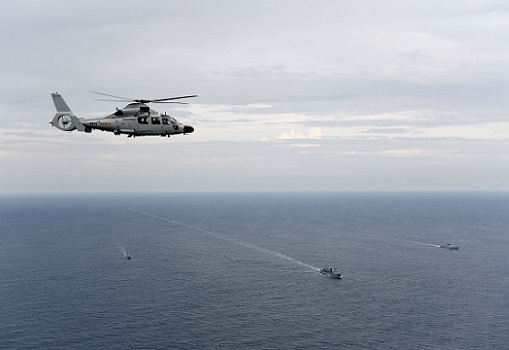 圖為5月14日,海軍第35批護(hù)航編隊進(jìn)行艦機(jī)協(xié)同訓(xùn)練。  江山 攝