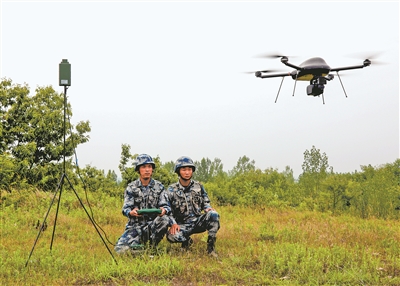 圖④:偵察分隊操縱無人機(jī)實施偵察。