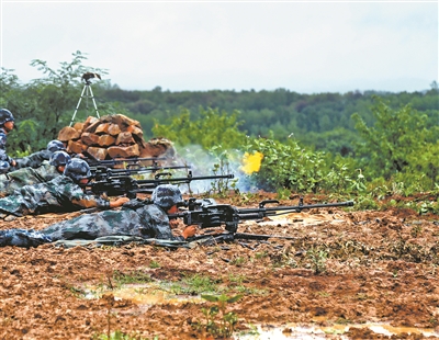 圖②:重機(jī)槍對“敵”實施火力壓制。