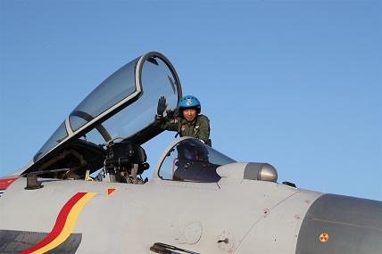 盧朝輝登上戰(zhàn)機(jī),自信揮手。武云飛攝