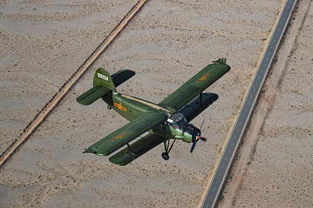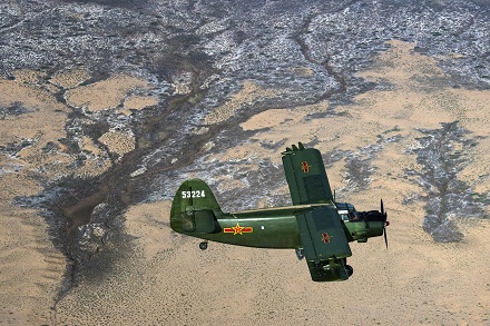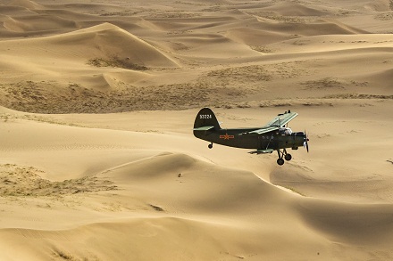 圖為官兵駕駛運-5飛機飛越西北戈壁執(zhí)行飛播造林任務。劉暢 攝
