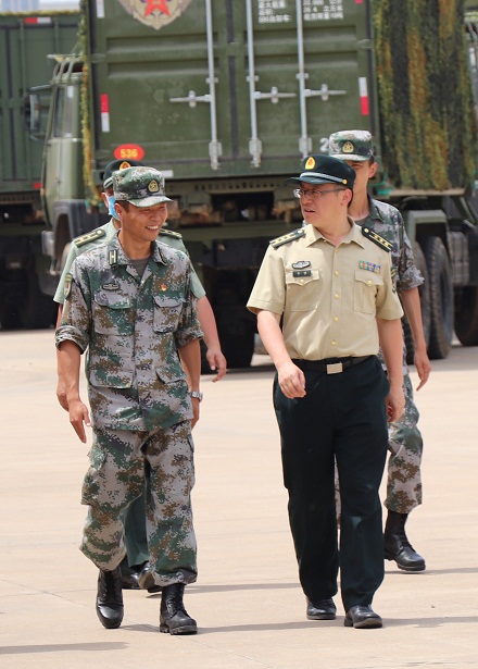 圖為李曦(右)與基層官兵探討訓練問題。 李元昊 攝