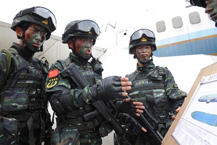 扮演歹徒的藍(lán)軍不按套路出牌,將飛機(jī)艙門用鐵絲鎖死,突擊隊(duì)員從艙外拉拽幾次無法突入。此時(shí),身為現(xiàn)場指揮員的彭星果斷下令,改用突擊車掛鎖拖拽、強(qiáng)行破門,兵分三路突入艙內(nèi)。當(dāng)槍聲突然從身后響起時(shí),藍(lán)軍被打了個(gè)措手不及,6名“歹徒”全部被“擊斃”。