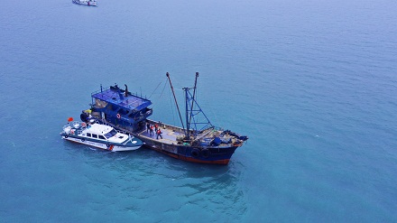 海警艦艇對嫌疑船舶進(jìn)行拖帶。