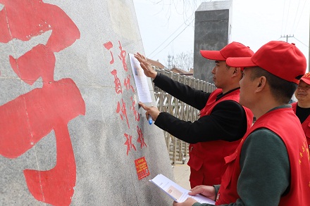 圖為清豐縣退役軍人事務(wù)局與退役軍人志愿服務(wù)隊為烈士靳升云粘貼尋親啟事。王友恒 攝