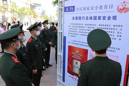 4月14日,武警北京總隊執(zhí)勤第二支隊在北京開展了形式多樣的“全民國家安全教育日”活動。