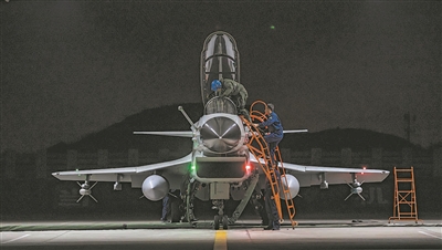 深夜,華東某機(jī)場萬籟俱寂。突然,一發(fā)綠色信號彈點(diǎn)亮夜空。伴著巨大的轟鳴聲,東部戰(zhàn)區(qū)海軍航空兵某旅數(shù)架戰(zhàn)機(jī)接續(xù)升空,投入高強(qiáng)度夜間飛行訓(xùn)練。