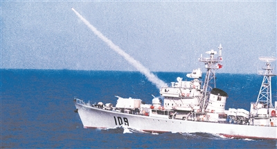 驅(qū)逐艦發(fā)射對空導(dǎo)彈攔截“敵”巡航導(dǎo)彈。