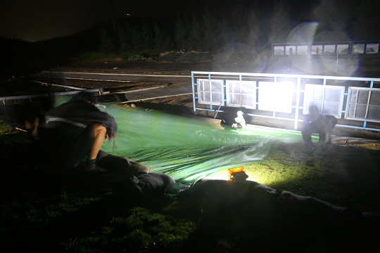 處于海南島最東端的銅鼓嶺測控點(diǎn),三面環(huán)山、風(fēng)大浪高,地勢的原因讓這里的防臺形勢更加嚴(yán)峻。曾經(jīng),2014年臺風(fēng)“威馬遜”登陸時,中心風(fēng)力達(dá)17級。為拯救光學(xué)實(shí)況記錄設(shè)備,測控點(diǎn)成立突擊小分隊,在狂風(fēng)暴雨中用繩索相互捆綁,成功保住了測控設(shè)備。這次臺風(fēng)過境,點(diǎn)號航天工作者更是未雨綢繆,提前開展臺風(fēng)形勢研判,實(shí)地查看風(fēng)險隱患和防范重點(diǎn)難點(diǎn),緊前加固設(shè)備天線罩,加蓋防雨布層層保護(hù)核心部位,力爭設(shè)備設(shè)施零損失。12日晚,連夜的暴雨導(dǎo)致測控點(diǎn)綠化斜坡松動,應(yīng)急分隊聞令而動,冒著大雨全力疏通泄洪渠道,壓緊壓實(shí)斜坡,及時避免了可能帶來的斜坡塌方和建筑損傷。