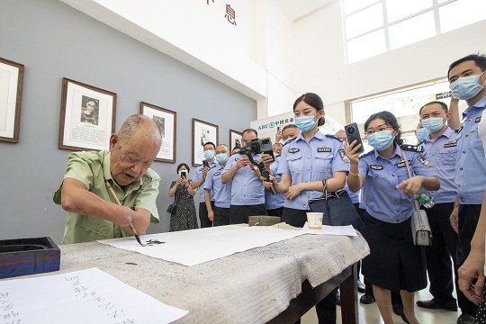 長津湖戰(zhàn)役親歷者、一級傷殘軍人周全弟,因嚴重凍傷致四肢截肢。他用兩只殘臂抱著筆練字,形成了具有自己風格的抱筆書法,如今他已是成都市書法家協(xié)會會員。