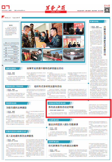 為深入學(xué)習(xí)宣傳習(xí)近平法治思想,弘揚(yáng)憲法精神,中部戰(zhàn)區(qū)兩級軍事法院線上線下、軍地配合,組織開展“憲法進(jìn)軍營”系列送法服務(wù)活動。