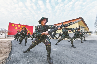 陸軍第71集團(tuán)軍某旅“紅三連”官兵發(fā)揚“草地黨支部”的精神基因,賡續(xù)傳承紅軍血脈。圖為“紅三連”官兵正在進(jìn)行刺殺訓(xùn)練。潘成杰 攝
