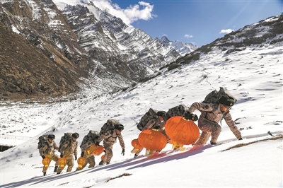 崗拉哨所海拔4820米,是山南軍分區(qū)所屬海拔最高的哨點。哨所常年風雪肆虐。要趕在大雪完全封山前,把天南海北“家的味道”送上哨所,并不是件容易的事。