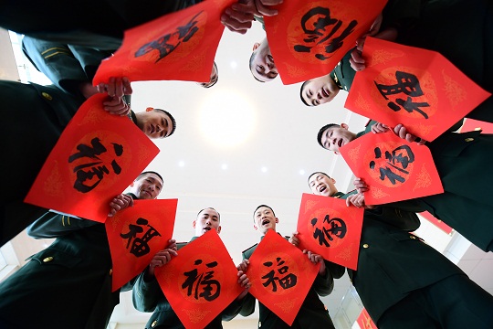 圖為官兵們手持福字向家人獻上祝福。曹先訓 攝