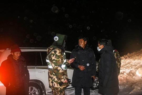 因災(zāi)害現(xiàn)場地處平均海拔4000多米以上海拔,持續(xù)降雪不斷,加之氣溫低至零下20多攝氏度,給整個道路搶通工作帶來了不少難度。為盡快清理路面積雪搶通道路,武警官兵采取“人歇機(jī)不停、分段搶通、先通后拓”的方法進(jìn)行全力搶通,克服了高寒缺氧及紫外線強(qiáng)烈等重重困難。