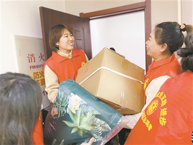 羅雅楠(左二)所在社區(qū),是群眾公認的環(huán)境美、生活美、心靈美“三美”社區(qū)。平時,她常與志愿者一起關愛社區(qū)孤寡老人,為他們提供幫助。邵天亮 攝