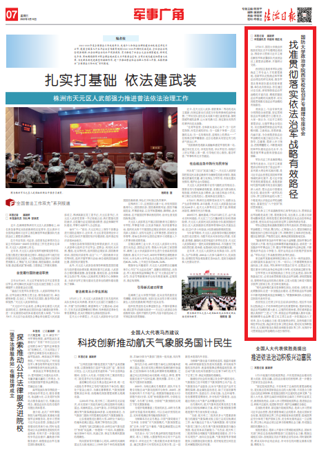 軍隊紀(jì)檢監(jiān)察系副教授屠其樂等代表談到,貫徹依法治軍戰(zhàn)略要上下同欲、勠力同心,匯聚強大合力。要堅持做好法規(guī)制度執(zhí)行過程中的監(jiān)督工作,明晰責(zé)任主體和評估標(biāo)準(zhǔn),健全監(jiān)督機制,嚴(yán)格責(zé)任追究,確保法規(guī)制度落地見效。