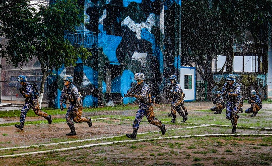圖為突降大雨,但陸戰(zhàn)隊員士氣高昂沖鋒在前。