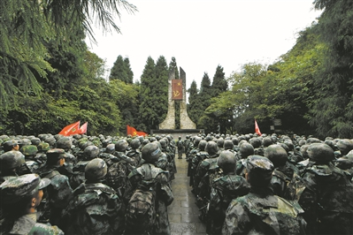 陸軍軍醫(yī)大學(xué)發(fā)揮紅色資源優(yōu)勢(shì),走出用紅色軍醫(yī)文化育人的新路。圖為長(zhǎng)途拉練途中,該校學(xué)員在婁山關(guān)烈士紀(jì)念碑前追尋先輩足跡,重溫紅色歷史。熊靈峰攝