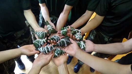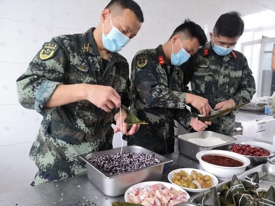傍晚,結(jié)束任務(wù)的執(zhí)法員們在餐廳自己動手包粽子?!斑@是我第一次學(xué)著包粽子,雖然包得奇形怪狀,但是我覺得特別有意義?!眻?zhí)法員小李笑著說。
