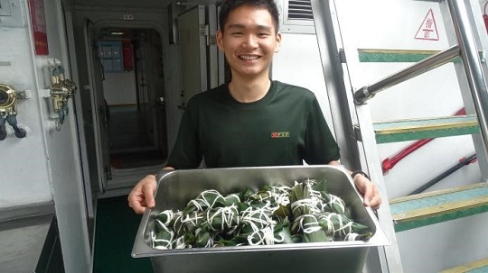 吃完粽子,執(zhí)法員們齊坐在甲板上,開始了一場別開生面的甲板晚會。每個人都放下白天的疲憊,感受著節(jié)日的愜意。短暫休息過后,執(zhí)法員們將迎來新一輪夜航巡邏任務(wù)。