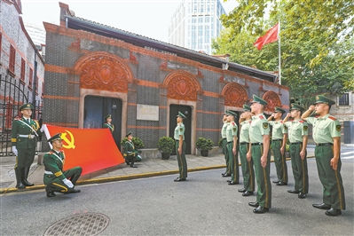 夏日申城,滿(mǎn)目綠色。站在武警上海市總隊(duì)執(zhí)勤第四支隊(duì)十中隊(duì)營(yíng)房頂層望去,一座紅色基調(diào)浸染的石庫(kù)門(mén)建筑,在現(xiàn)代都市建筑群中格外醒目。那里,正是黨的一大會(huì)址。