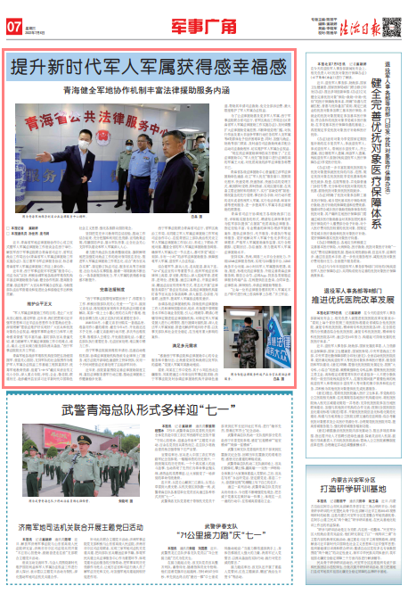 青海軍地各級(jí)涉軍維權(quán)機(jī)構(gòu)堅(jiān)持把弘揚(yáng)愛國擁軍,營造關(guān)心國防、支持軍隊(duì)的社會(huì)氛圍作為維護(hù)軍人軍屬合法權(quán)益工作基礎(chǔ)工程抓緊抓好。統(tǒng)籌軍地教育資源,組建“1+8+N”藏漢雙語宣傳文化小分隊(duì),深入重點(diǎn)寺院、學(xué)校、企業(yè)、敬老院、聯(lián)建村莊,赴涉藏州縣宣講習(xí)近平新時(shí)代中國特色社會(huì)主義思想,強(qiáng)化各族群眾國防觀念。