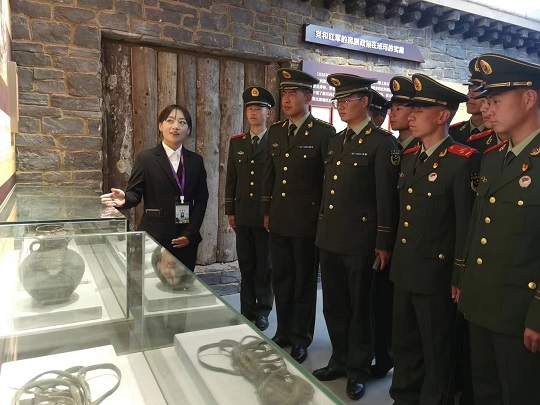 圖為官兵參觀果洛州班瑪縣紅軍溝紀念館。夏大川 攝