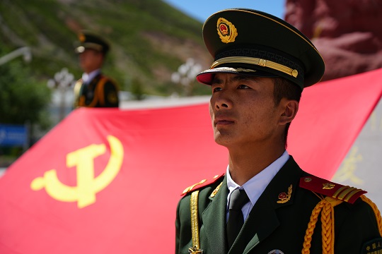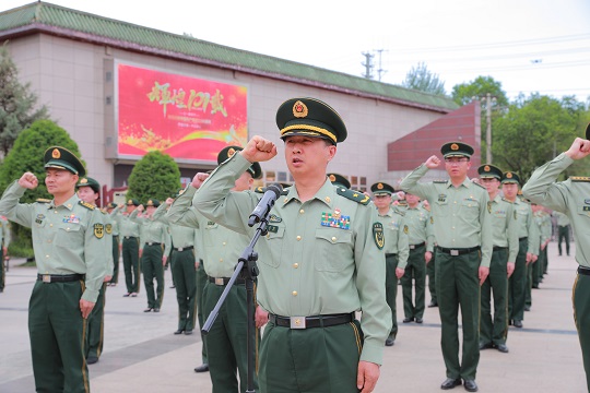 圖為武警青??傟犐賹⒄挝瘑T楊志強領(lǐng)誓。朱曉坷 攝