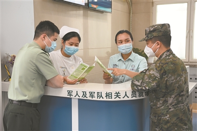 “與服務(wù)水平有關(guān)的‘?dāng)U大’與‘減免’,出現(xiàn)在醫(yī)院惠軍改革歷程中并非第一次?!笨傋o(hù)士長(zhǎng)肖紅菊在解放軍總醫(yī)院第一醫(yī)學(xué)中心工作30年,她如數(shù)家珍地說,2017年,全軍醫(yī)院門診就醫(yī)“一卡通”出臺(tái);2019年,全軍士兵、學(xué)員等軍隊(duì)人員進(jìn)入“一卡通”服務(wù)保障范圍;隨著保障對(duì)象范圍拓寬,軍人軍屬被納入系統(tǒng)“惠軍白名單”……