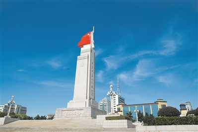 圖①:2022年八一建軍節(jié)前夕,南昌市八一廣場上,八一南昌起義紀念塔頂端鮮紅的軍旗在陽光下熠熠生輝。盧成行攝