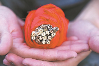 圖為戰(zhàn)士手捧紅心楊。吳振 攝