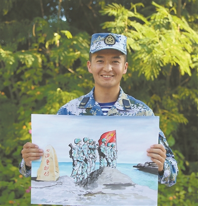 生長在新疆的我,從小就向往大海,夢想著成為一名海軍戰(zhàn)士。幸運的是,2年前,這個夢想成真了。然而上島后,理想與現(xiàn)實的差距曾讓我一度感到迷茫。直到有一次與在島上待了10余年的軍醫(yī)聊天,我才改變了對守島的認識,開始懂得了堅守的意義。也是從那時開始,我發(fā)揮特長,用畫筆記錄西沙的壯麗風光、守島官兵的訓練生活。
