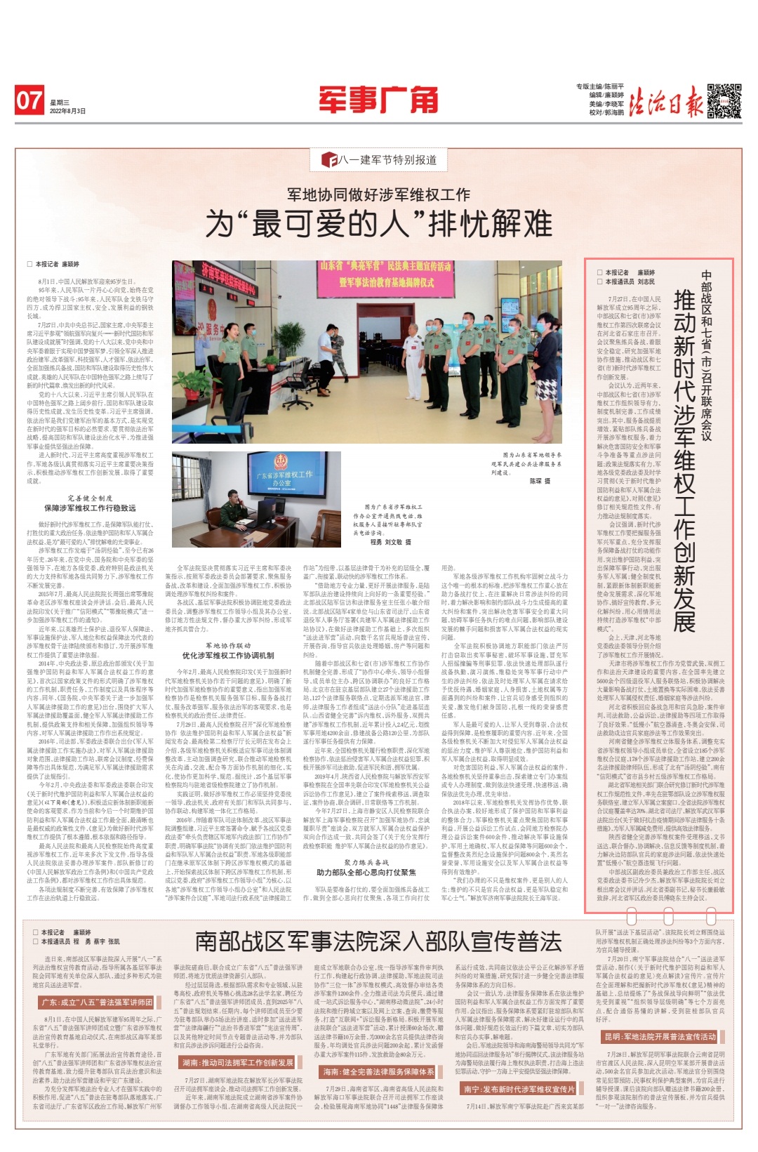 7月27日,在中國(guó)人民解放軍建軍95周年之際,中部戰(zhàn)區(qū)和七?。ㄊ校┥孳娋S權(quán)工作第四次聯(lián)席會(huì)議在河北省石家莊市召開(kāi)。會(huì)議聚焦練兵備戰(zhàn),著眼安全穩(wěn)定,研究加強(qiáng)軍地協(xié)作措施,推動(dòng)戰(zhàn)區(qū)和七?。ㄊ校┬聲r(shí)代涉軍維權(quán)工作創(chuàng)新發(fā)展。