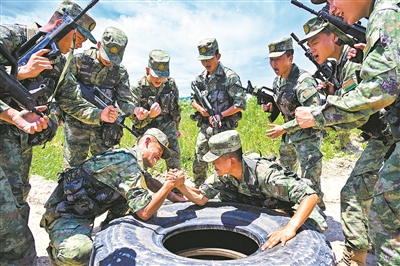 圖①:兄弟二人在戰(zhàn)友吶喊聲中進行小比拼。圖②:訓(xùn)練結(jié)束后,兄弟倆經(jīng)常交流心得。鄧居山 吳昊宇 攝影報道