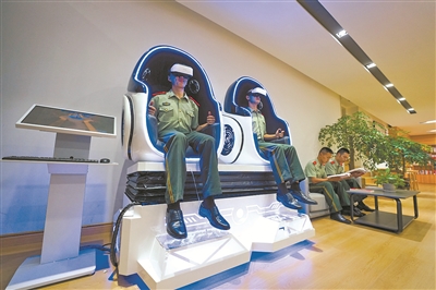 下圖為武警撫州支隊(duì)官兵通過“VR云游”系統(tǒng)開展親歷式革命傳統(tǒng)教育。黃祁明 攝