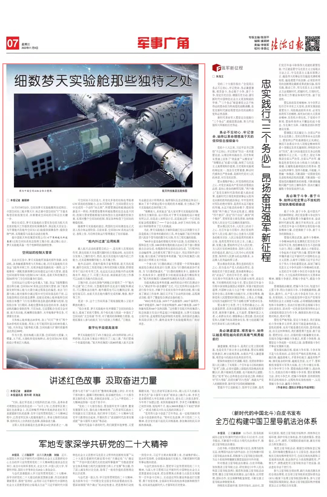 “綜合來看,夢天實驗艙補充并增強了空間站的綜合能力,提高了系統(tǒng)可靠性。其個性化能力則進一步強化了空間站的‘太空母港’作用,對于載荷的保障能力更強,也將拓展有人參與的航天飛行與在軌工作模式。”王翔說。
