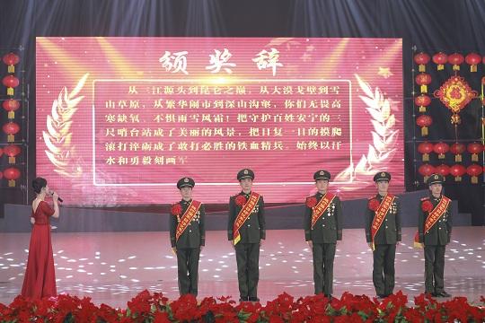 1月15日晚,武警青??傟犜诖蠖Y堂隆重舉行“踐行強軍目標”先進典型頒獎典禮暨“迎新春”文藝演出。晚會將頒獎環(huán)節(jié)與文藝節(jié)目穿插融合,運用“現(xiàn)場直播+實時轉播”形式,讓總隊全體官兵歡聚一堂,賀先進,迎新春。