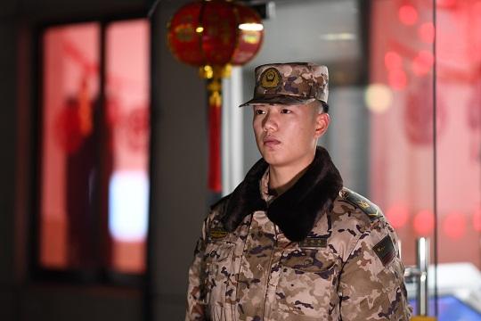1月21日是農(nóng)歷除夕,武警江西總隊官兵堅守執(zhí)勤崗位,守護一方平安,確保群眾度過一個平安祥和的新春佳節(jié)。圖為除夕夜,武警江西總隊警衛(wèi)勤務(wù)大隊哨兵周鈺博在南昌市某軍營堅守執(zhí)勤哨位。本報通訊員 曹先訓(xùn) 攝