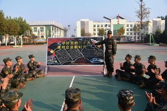 走進(jìn)機(jī)動中隊,電子屏、宣傳欄、黑板報醒目地展示著黨的二十大報告金句和要點提示。教育課堂上,官兵們你一言我一語交流學(xué)習(xí)心得。為幫助大家加深對相關(guān)內(nèi)容的理解認(rèn)識,中隊黨支部還利用主題黨日時間,開展大會報告宣講、黨章知識競賽等活動,不斷推動黨的二十大精神走深走實。
