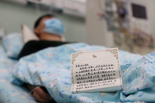 采集手術(shù)結(jié)束后,躺在病床上的文濤收到患者家屬的感謝信。讀著信中的內(nèi)容,他不禁濕了眼眶。