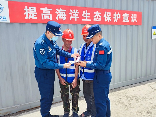 執(zhí)法員深入港口碼頭、漁業(yè)村和轄區(qū)船舶,進行普法宣傳、貼近交流,向駐地群眾普及海洋知識和海洋環(huán)境保護法、《海域使用管理法》等法律法規(guī),向漁船民講解海警法相關規(guī)定和伏季休漁有關常識,引導群眾認識到向海洋傾倒廢棄物、排放污水、禁漁期違法捕撈、使用禁用漁具違規(guī)捕撈等行為,對海洋環(huán)境造成的重大危害。